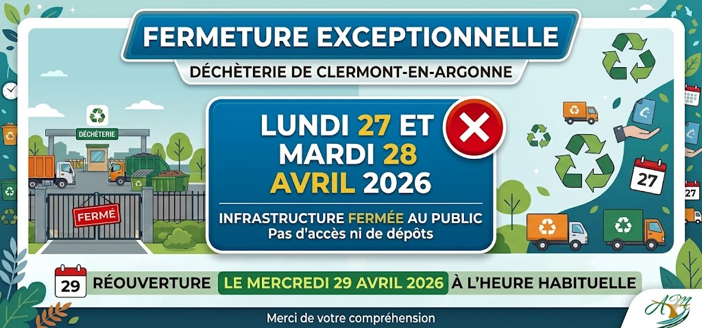 La déchèterie de Clermont-en-Argonne sera exceptionnellement FERMÉE les :