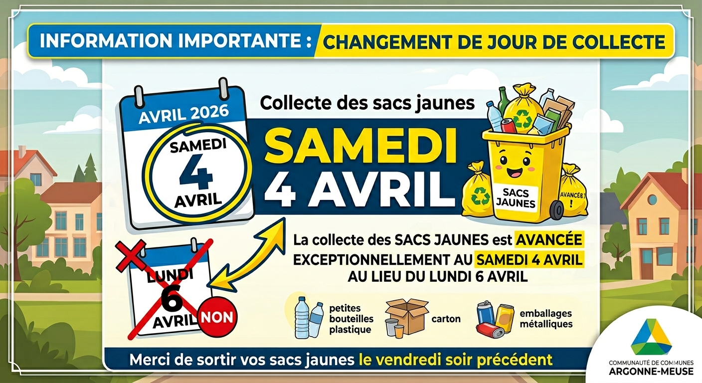 🚛♻️ En raison du lundi de Pâques, la collecte des sacs jaunes est AVANCÉE pour les communes suivantes :